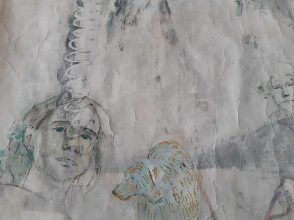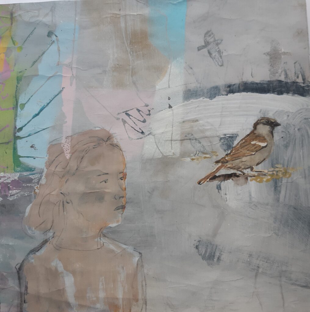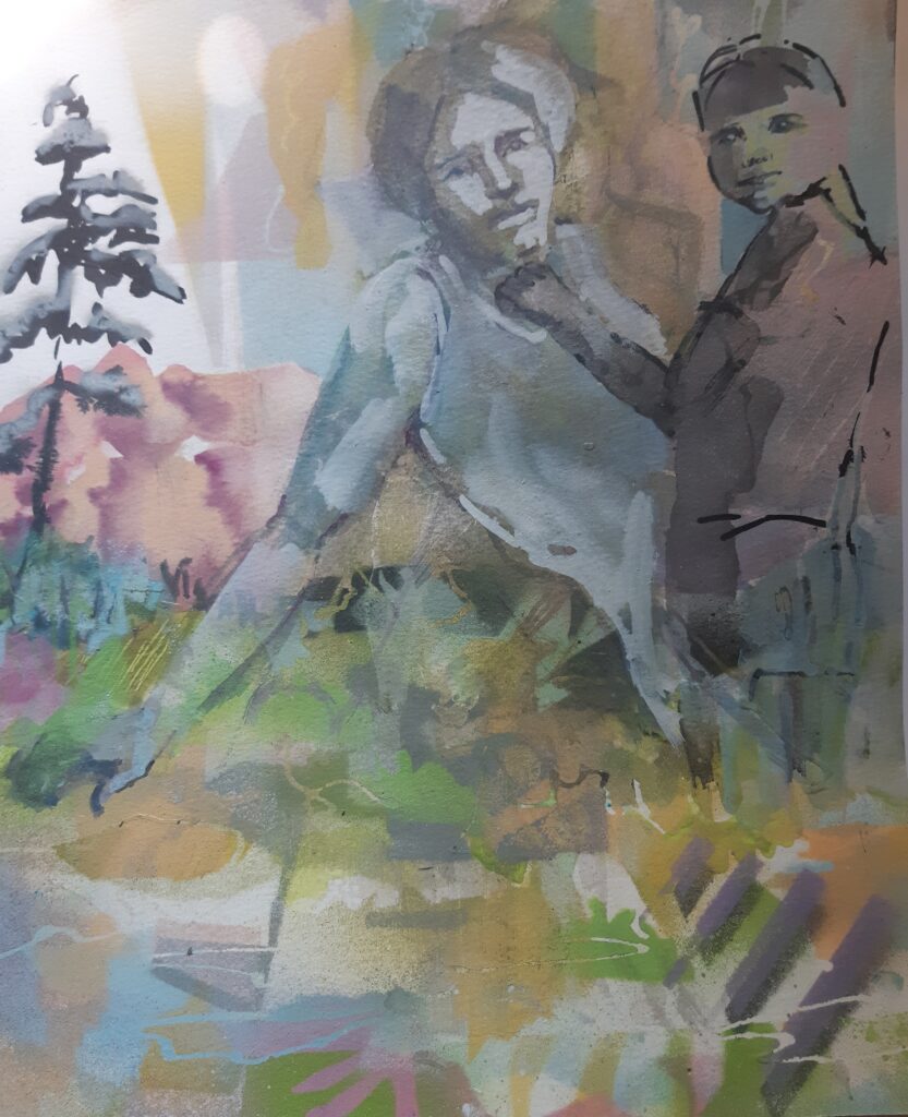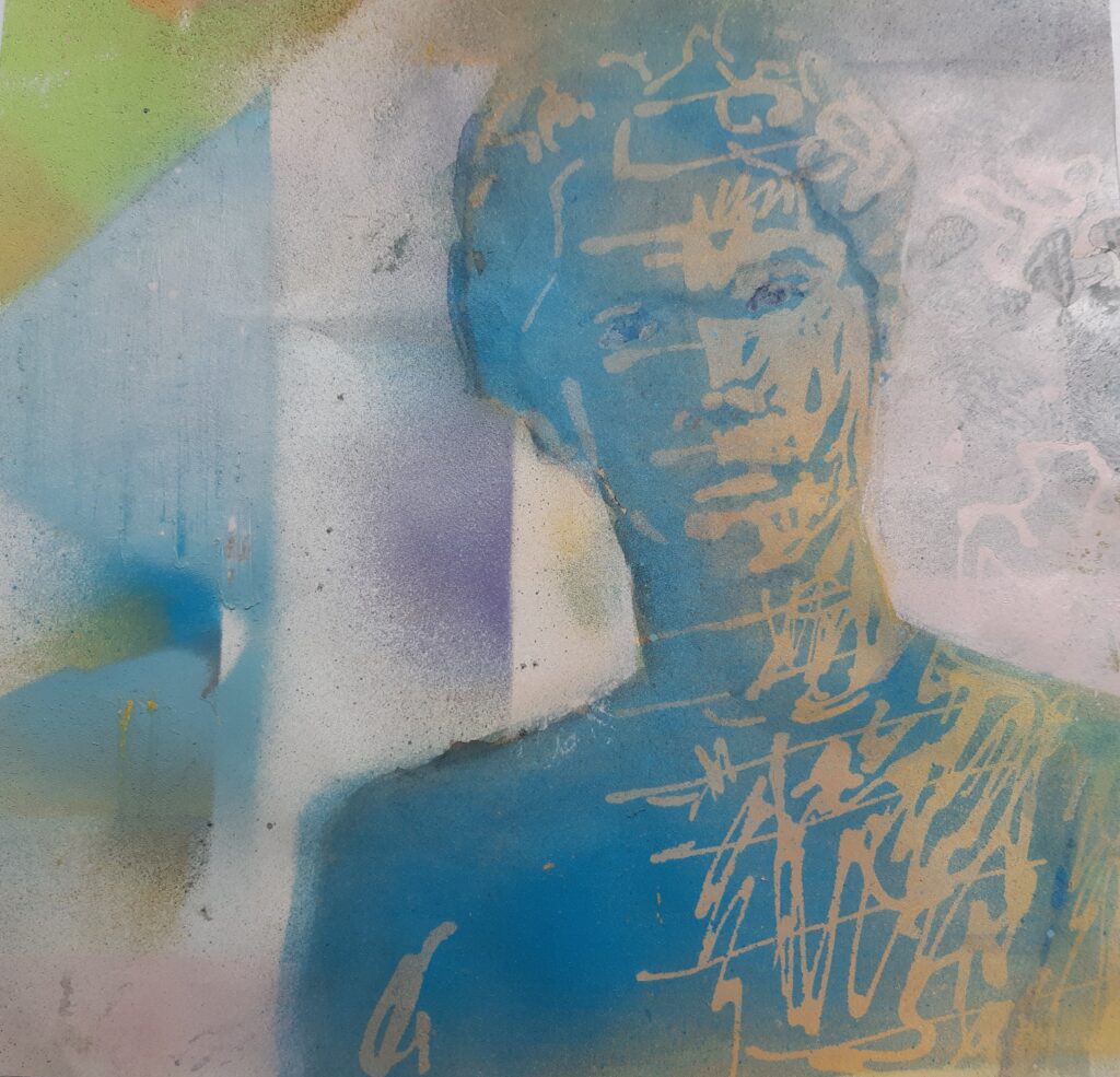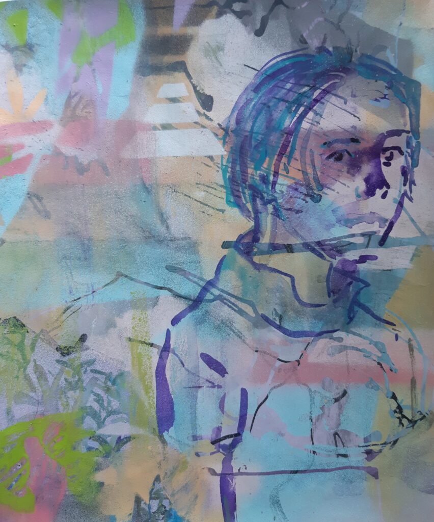 J’aime mélanger différentes techniques. J’utilise des bombes de peinture acrylique, des pochoirs, de l’encre de chine, et le fusain.