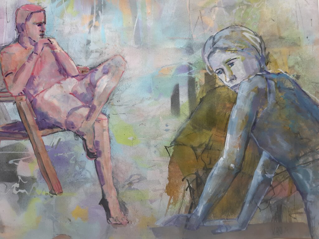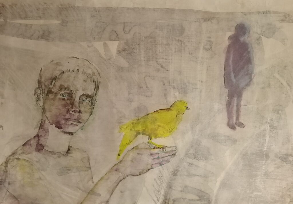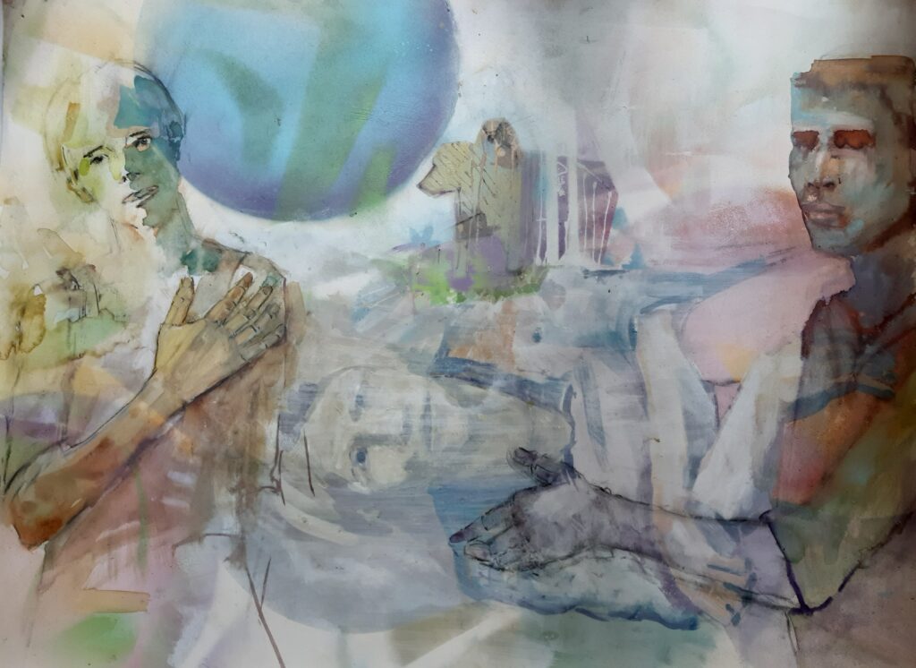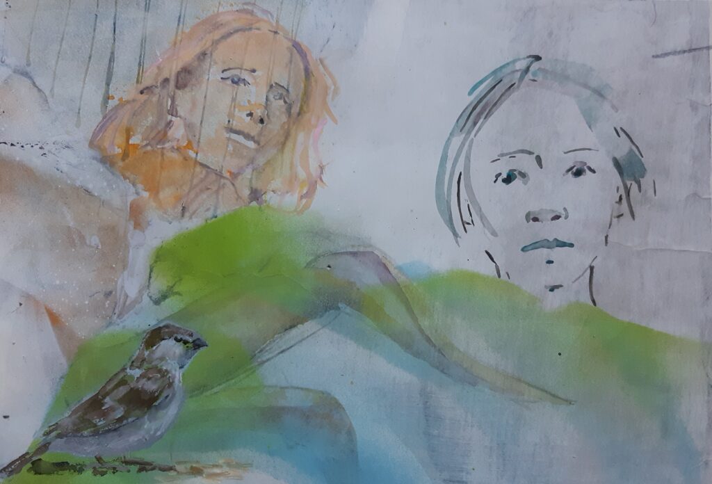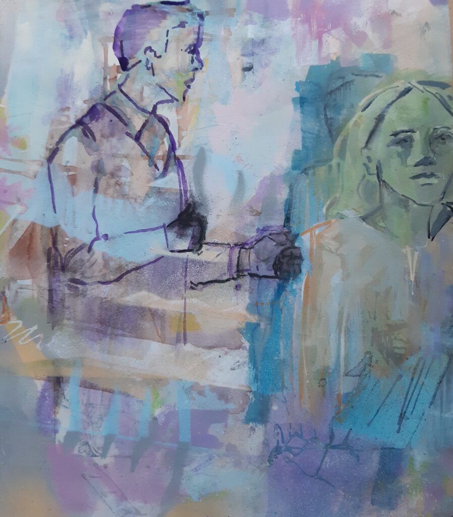 J’aime mélanger différentes techniques. J’utilise des bombes de peinture acrylique, des pochoirs, de l’encre de chine, et le fusain.
